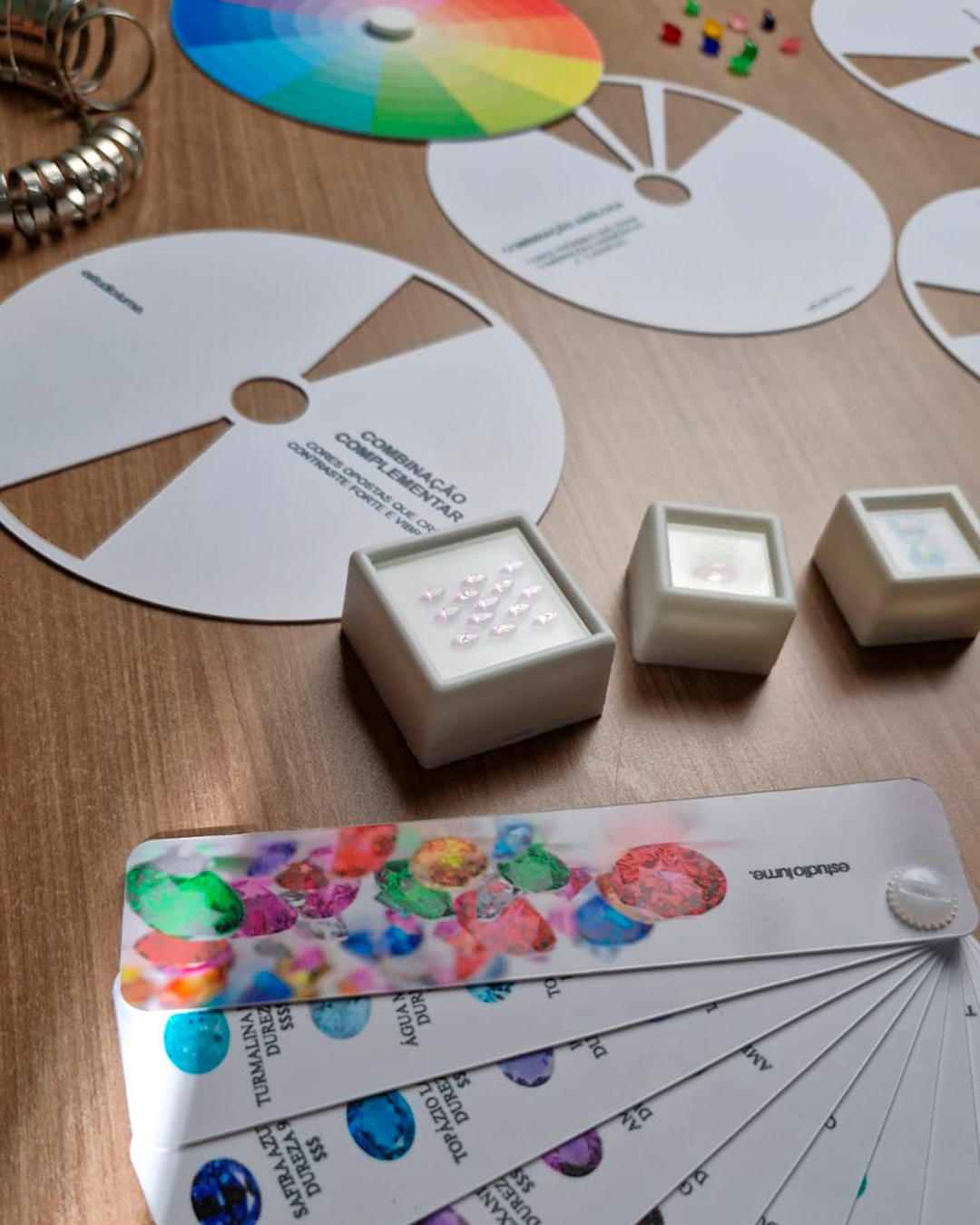 O Círculo Cromático e a Cartela de Gemas do Estúdio Lume são ferramentas indispensáveis para quem busca profissionalizar o atendimento e impulsionar as vendas com estratégia e sofisticação. Enquanto o Círculo Cromático ajuda a criar combinações de cores harmônicas para composições com gemas, a Cartela de Gemas apresenta de forma visual e organizada as principais pedras utilizadas na joalheria.