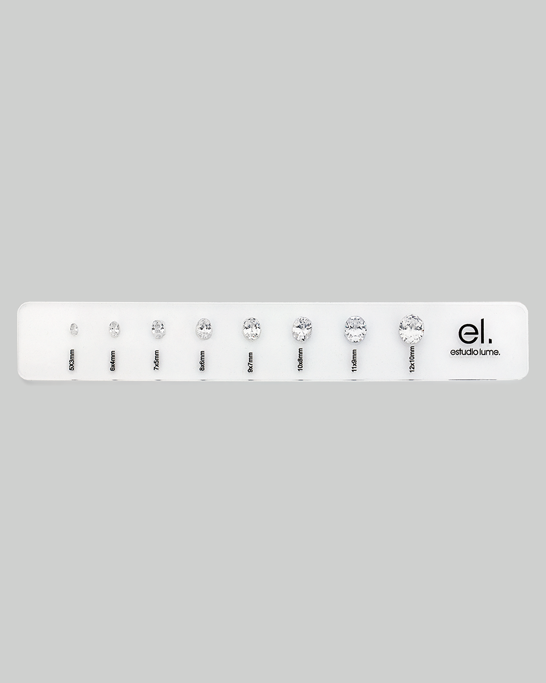 O Gabarito Oval do Estúdio Lume é uma ferramenta prática e precisa para o desenho técnico de gemas com lapidação oval. Com medidas calibradas em milímetros, ele permite criar esboços proporcionais, alinhados aos padrões comerciais do setor joalheiro.